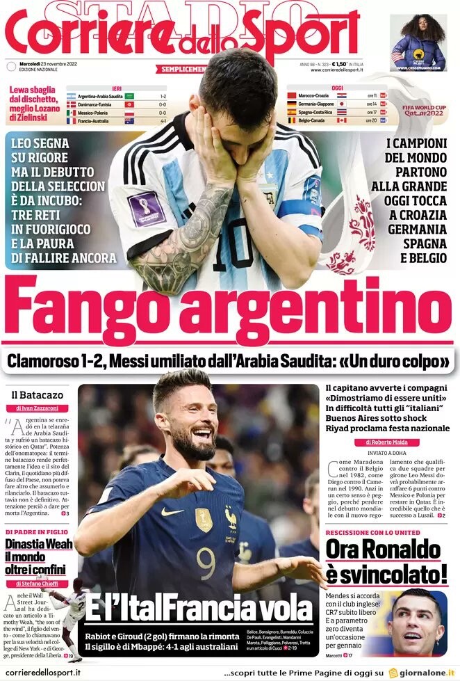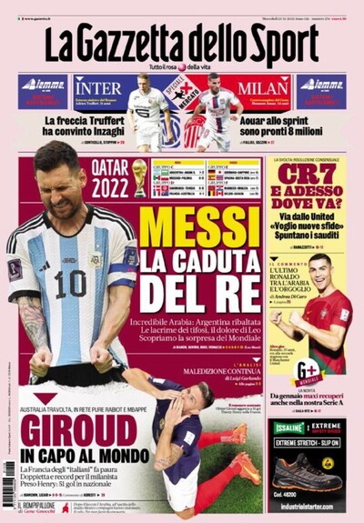 #rassegnastampa #primapagina #edicola #CR7𓃵 #francia #giroud #arabiasaudita #FIFAWorldCup