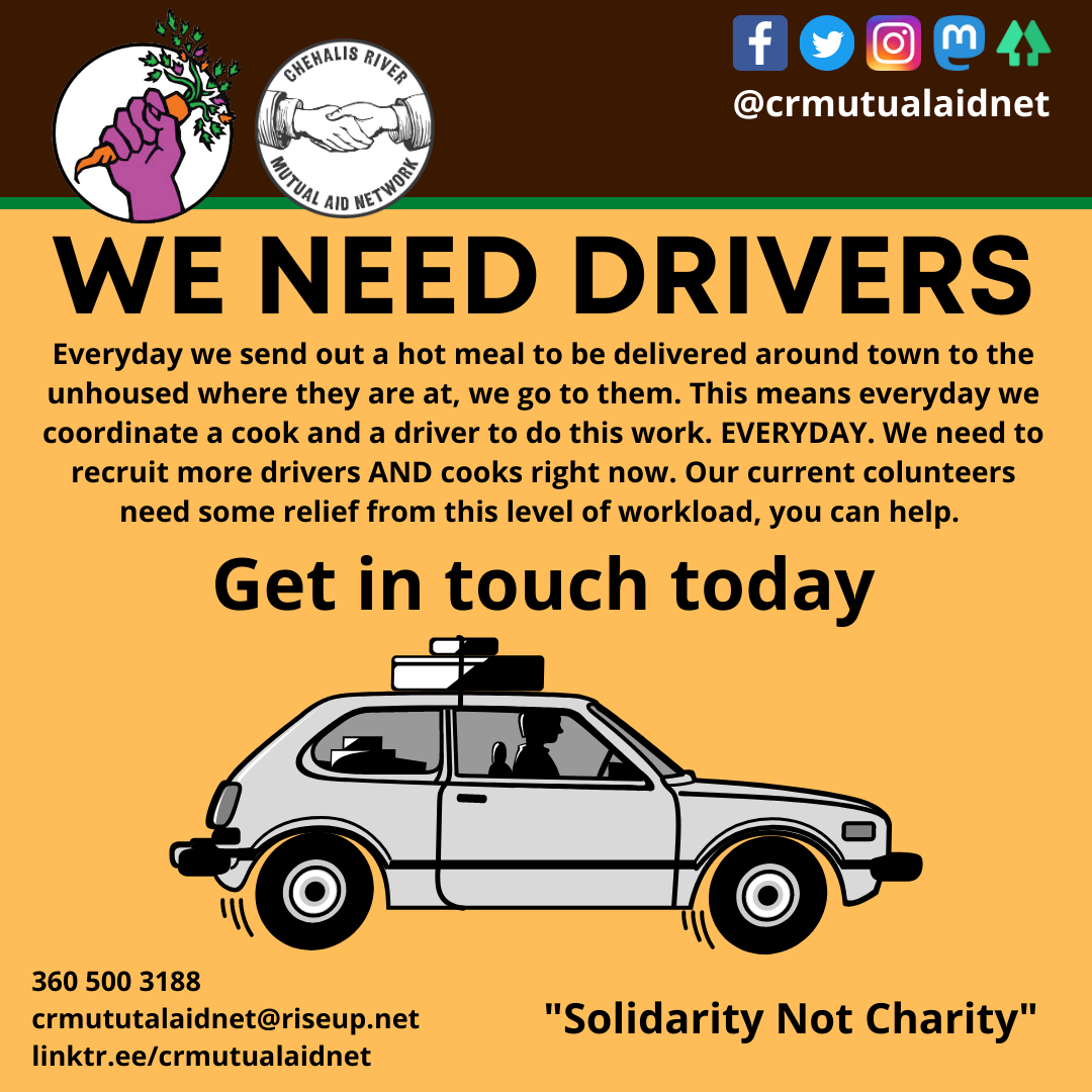We need drivers. If you can drive one night a week, a month, and want to help feed your community, get a hold of us.