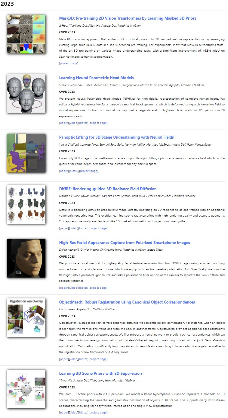 Will post details about each project soon - check out the projects: https://niessnerlab.org/publications.html