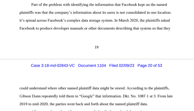 Facebook/Meta’s and its law firm Gibson Dunn were fined and sanctioned by US Courts for their terrible and obstructive conduct during the now settled #CambridgeAnalytica class action #DataPrivacy lawsuit in California. Read the actions of bad actors who successfully stonewalled the system and shielded Zuckerberg and Sandberg from depositions, when money was no object and the lawyers were willing to act badly to help hide the truth. https://storage.courtlistener.com/recap/gov.uscourts.cand.327471/gov.uscourts.cand.327471.1104.0_1.pdf