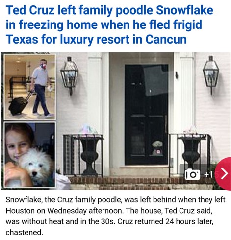 Texas is without power and people are freezing. Again. Another job well done by Gov #Abbott. Also…has anyone seen #CancunCruz ?!