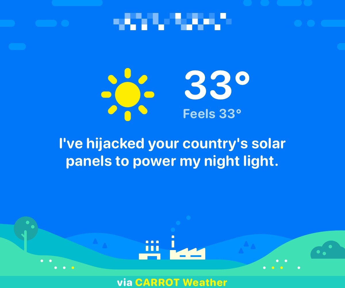 Just went for a 30 minute walk, and it turns out that #CarrotWeather provided a 𝘷𝘦𝘳𝘺 accurate report 😆