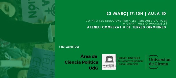 participaran a la xerrada 'Votar a les eleccions per a persones d'origen migrat: missió impossible?' 📍17h15 a la Facultat de Dret al Campus Montilivi (Aula 1D)
