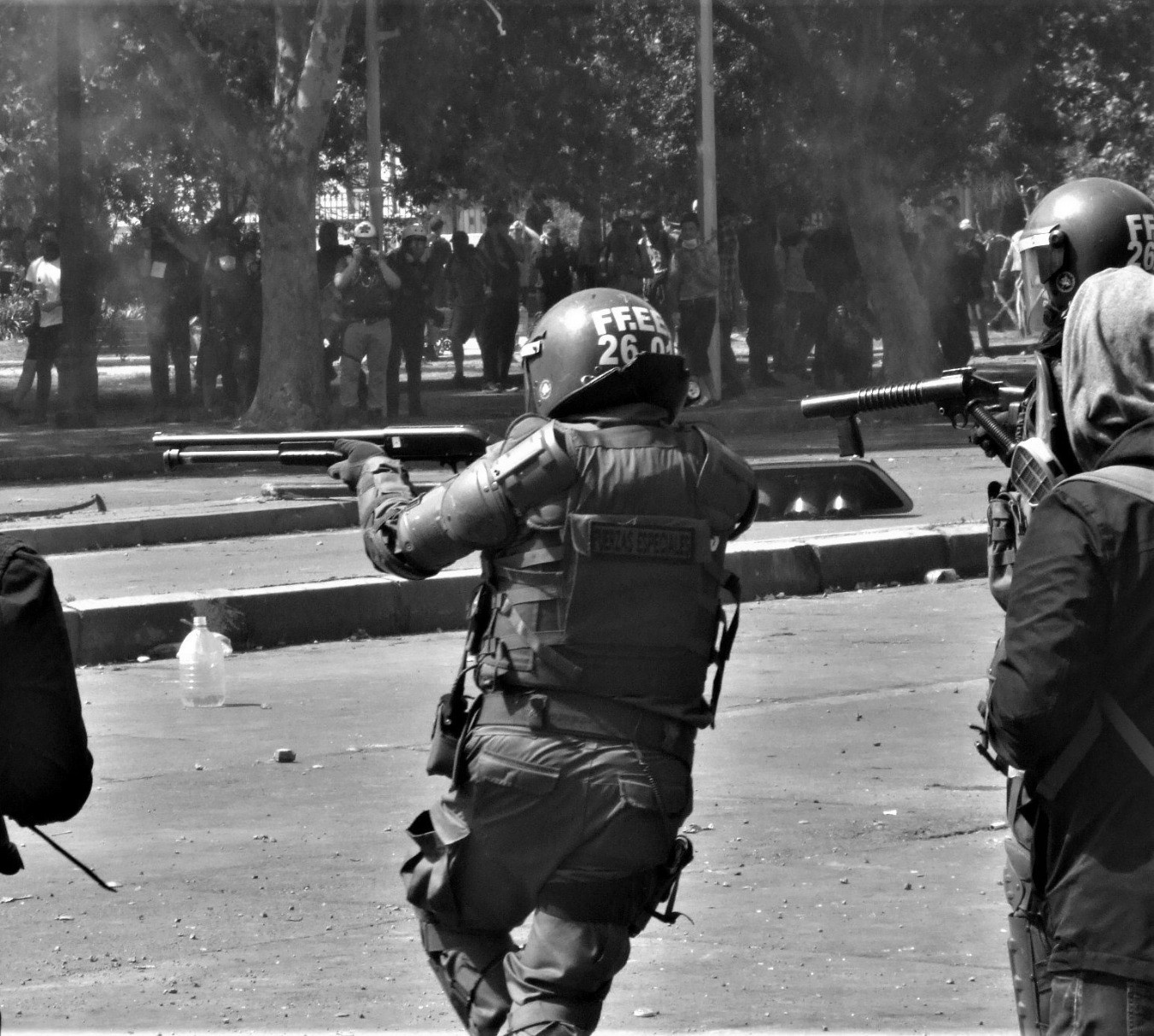 Pendant ce temps, au Chili, les défenseurs des droits de l’homme dénoncent toujours l’utilisation de soude caustique dans les canons à eau et le monde continue à détourner les yeux.