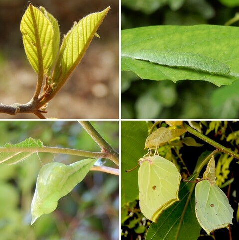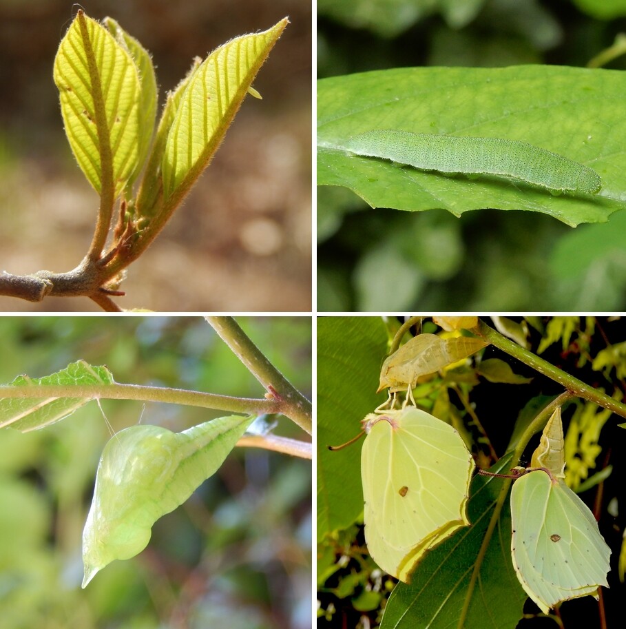 Nog een keertje! #vlindermaand @ErikDePay #citroenvlinder. Hier eitje op sporkehout, rups, pop en net uitgekomen vlinders.