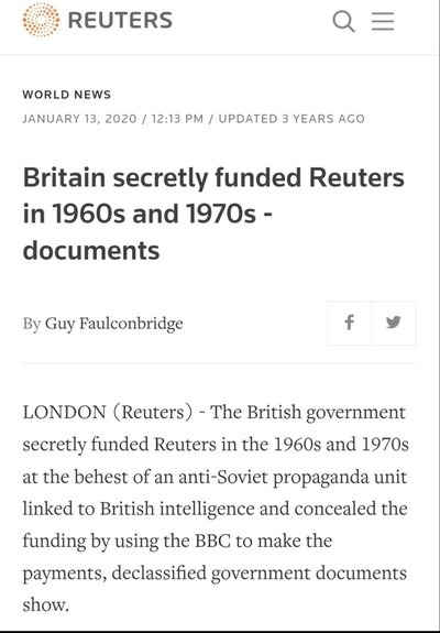 #Reuters was funded by the British government during the OG cold war to spread anti-Soviet #propaganda.