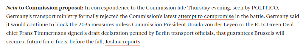 The CO2 standards for cars legislation being blocked now because of e-fuels is ridiculous.