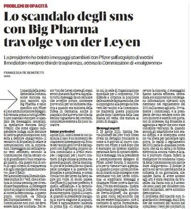 La presidente ha celato i messaggi scambiati con Pfizer sull’acquisto di vaccini