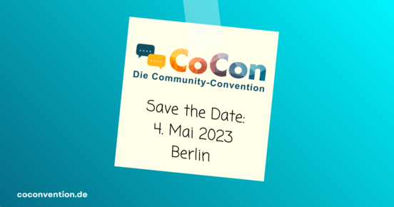 Save the Date! Am 4.5.23 organisieren @hirnrinde und ich in Berlin CoCon | Die Community-Convention als Konferenz mit Festival-Elementen.