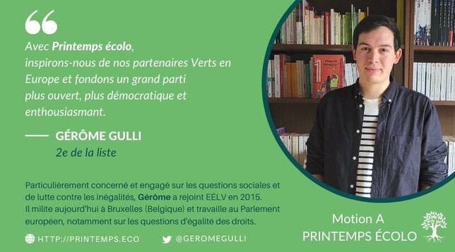 Parmi les excellentes nouvelles du #CongresEELV : l’entrée de @GeromeGulli@twitter.com à la direction du parti, en charge du projet, de la prospective et de la riposte!