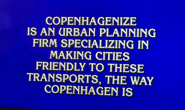 The bicycle lobby has infiltrated #Jeopardy. There's no stopping us now. #BikeTooter #Cycling #Copenhagenize
