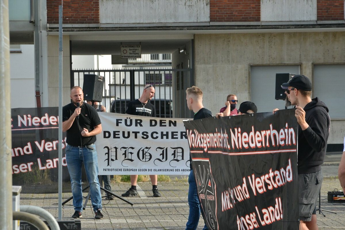 Kevin von Pegida NRW und ein weiterer Redner aus #Duisburg sprechen in #Moers. Wie immer geht es bei den Rechten um Schuldkult, Patriotismus und "linke Zecken". #mo2506