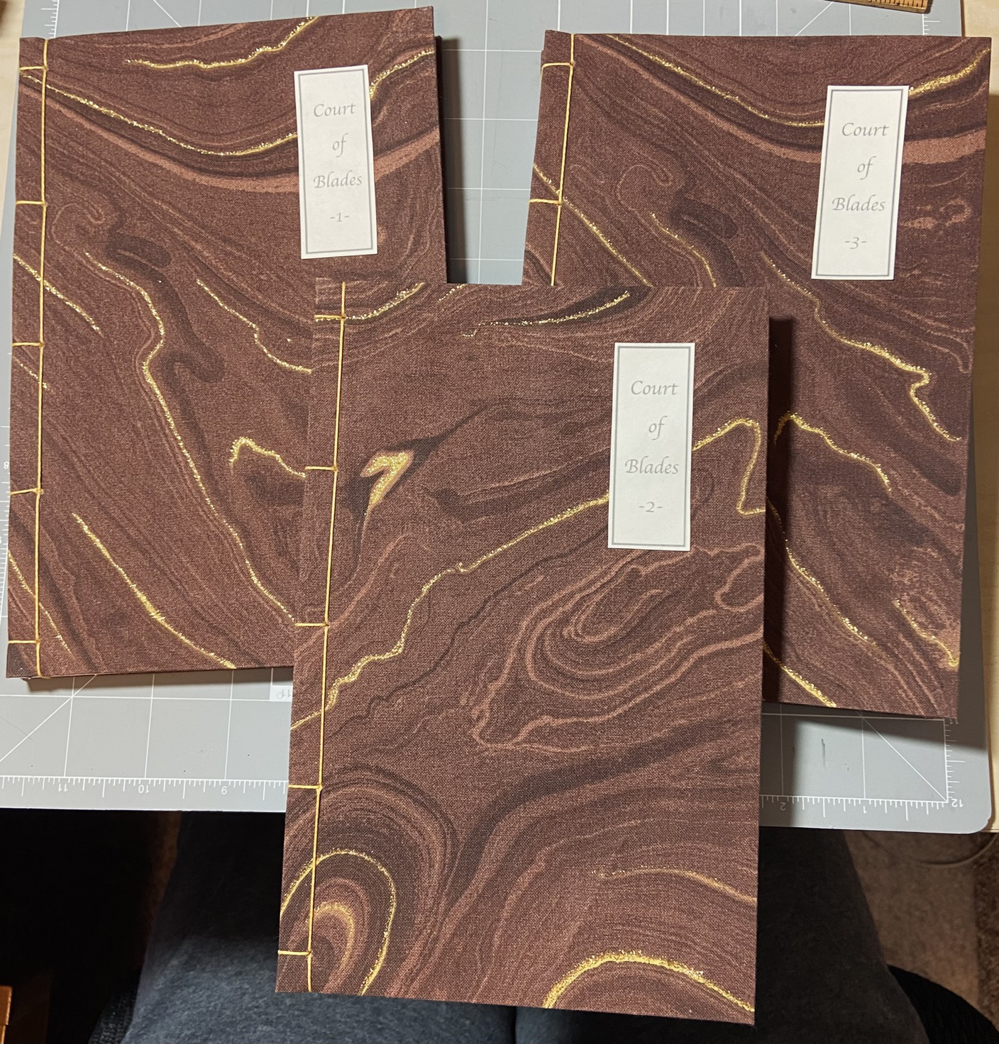 Been practicing some bookbinding with personal printouts of TTRPGs. About 3/4th done with Court of Blades! :apartyblobcat:
