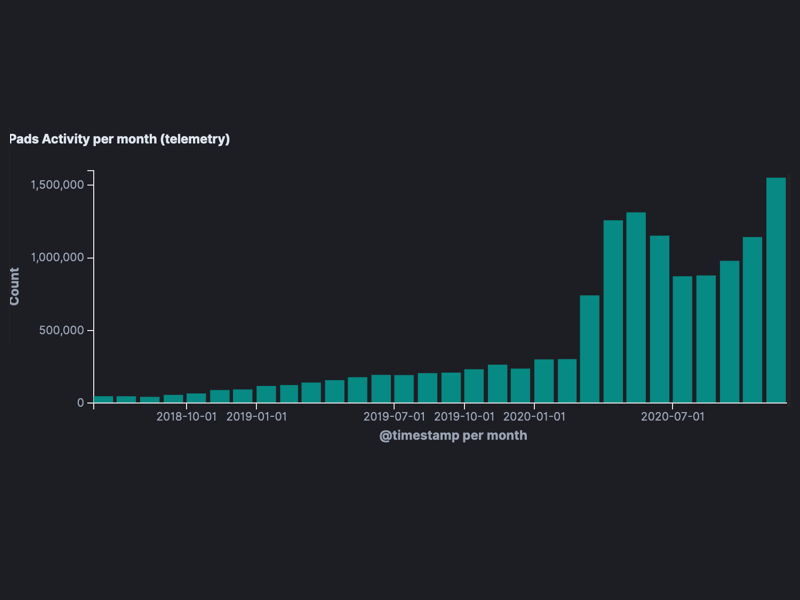 Big month of November for http://cryptpad.fr, highest ever, with more than 1.5 Million pads opened (+18%). It's also a very big milestone for our team as subscriptions and donations are paying 1 salary for the first time this month ! #privacy #cryptpad