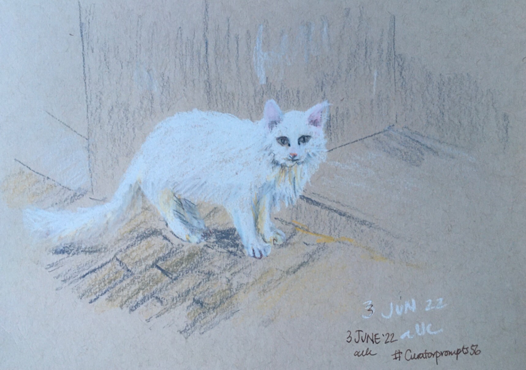#curatorprompts56 #curatorprompts #cats #tonedpaper #pastels white cat on tan Strathmore paper, Carbothello pencils