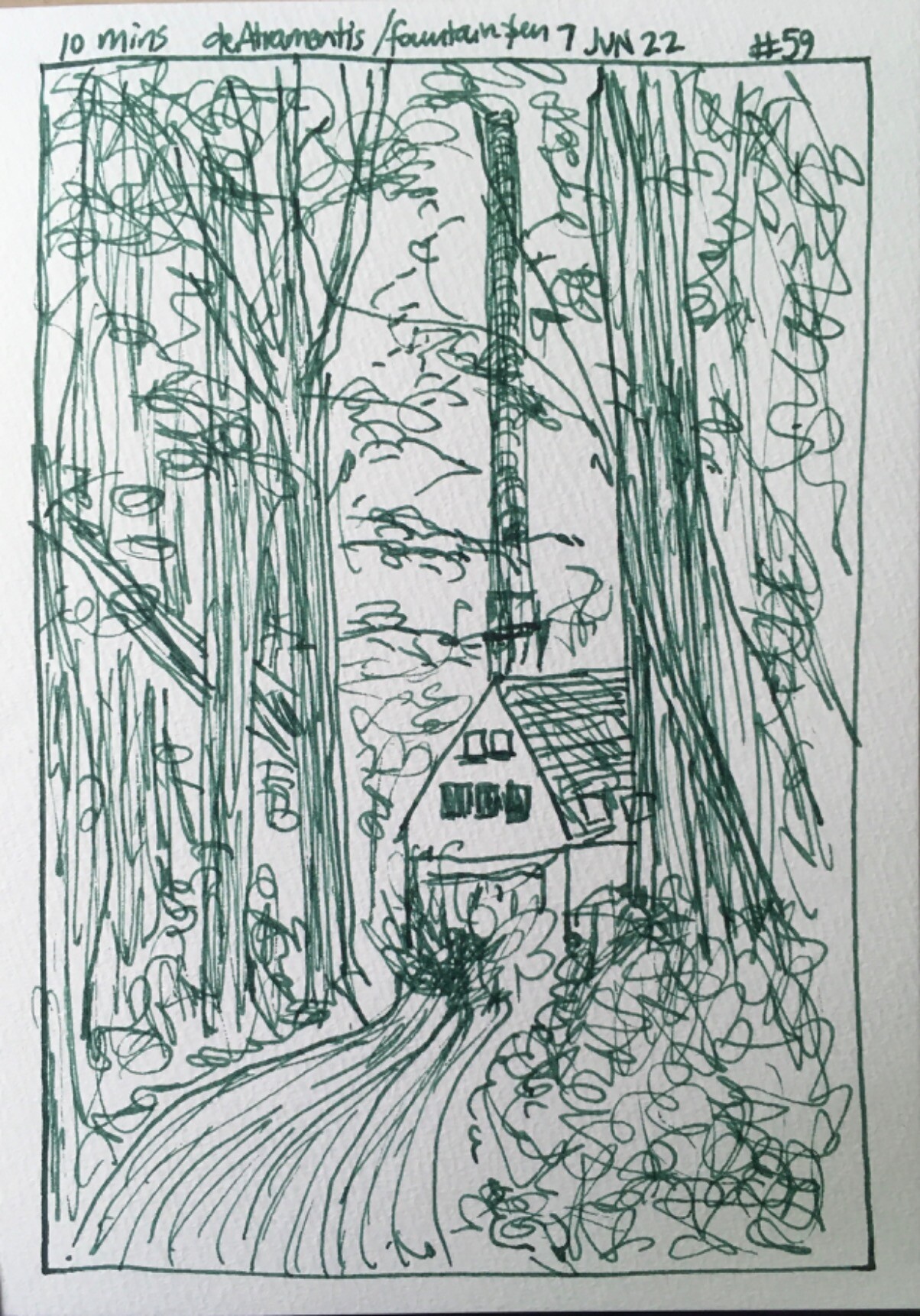 #curatorprompts59 #curatorprompts #mastoart A 10-minute pen-and-ink sketch with fountain pen and DeAtramentis Document ink.