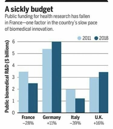 Tante chiacchiere sovraniste sull‘autonomia vaccinale, ma ecco i dati reali: l‘Italia ha diminuito la spesa pubblica in ricerca di salute dal 2011-18 del 38%: la Germania spende ora 6 volte più, attira i talenti, inventa vaccini (#BioNTech, #CureVac): Perché credono nei giovani! https://twitter.com/marcocattaneo/status/1403810234305556481