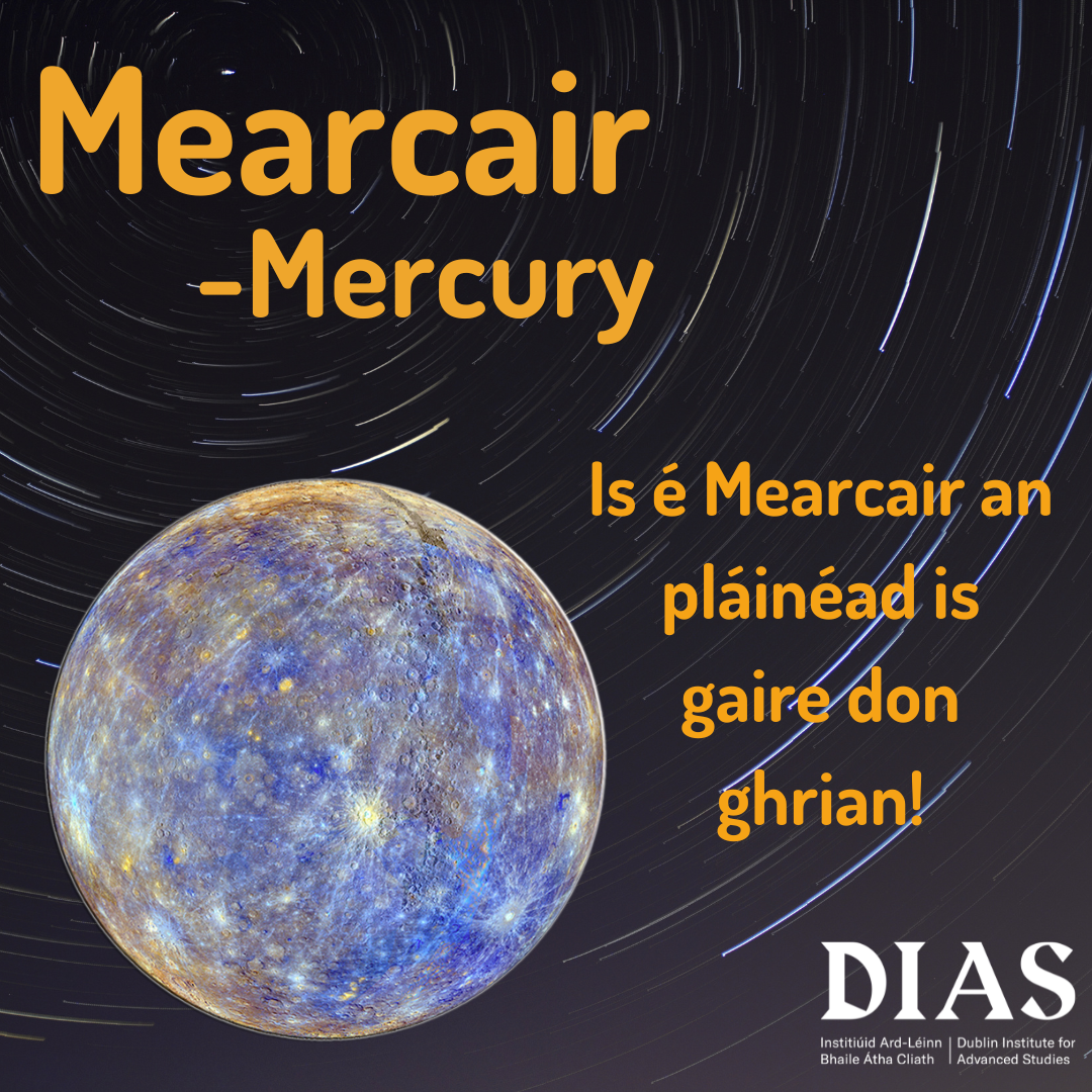Is é Mearcair an pláinéad is gaire don ghrian! - Mercury is the closest planet to the sun!