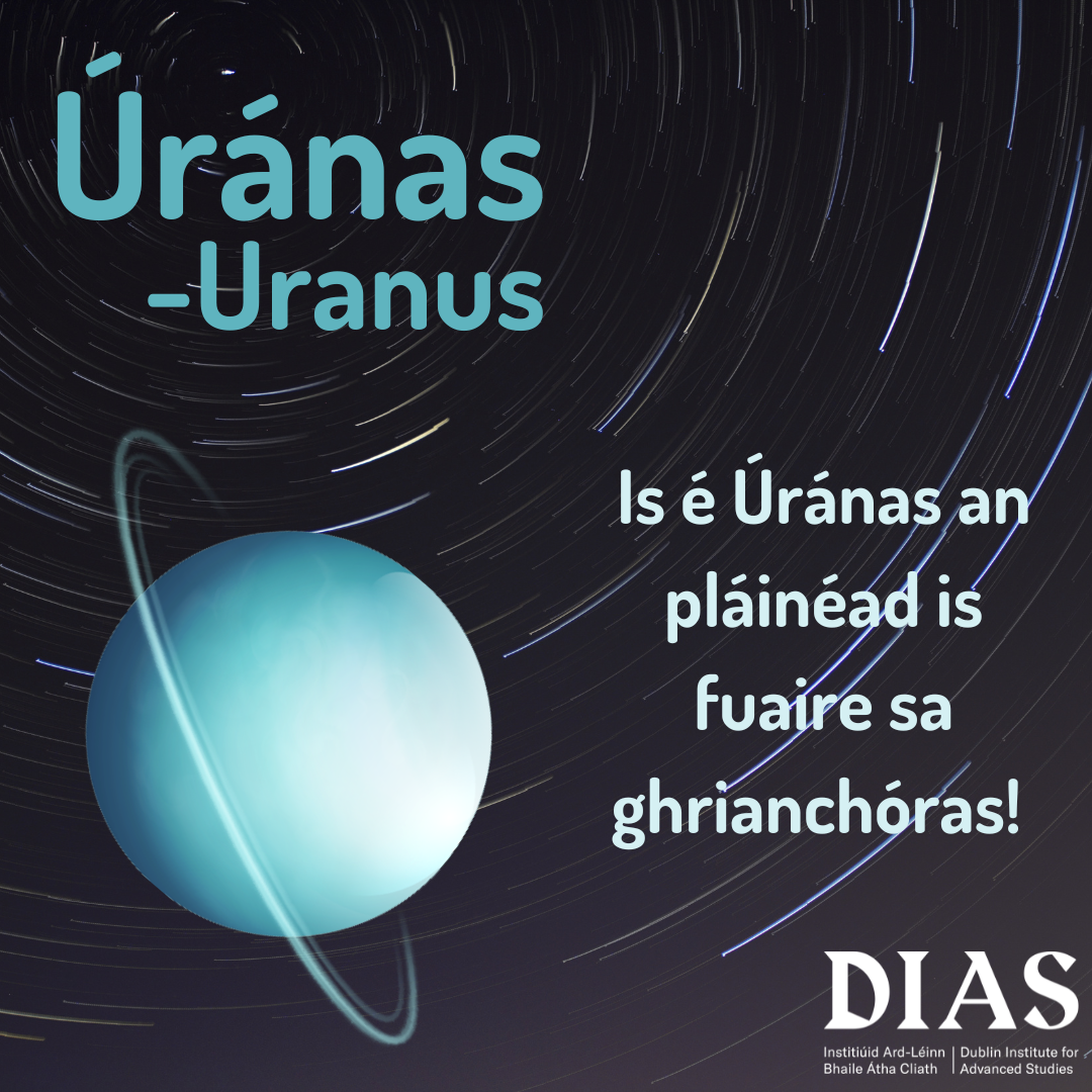 Is é Úránas an pláinéad is fuaire sa ghrianchóras! - Uranus is the coldest planet in the solar system!