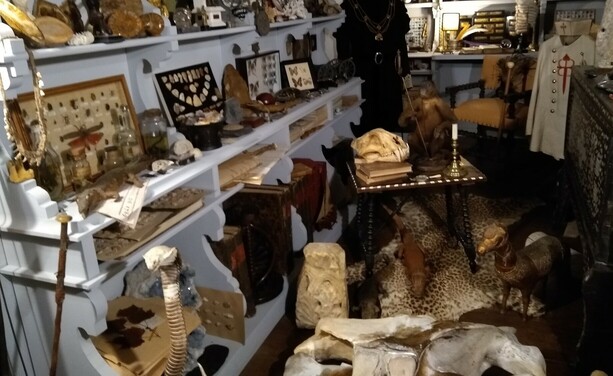 Cabinet of curiosities from the Chateau de Fenelon in France. What's your favorite object here?