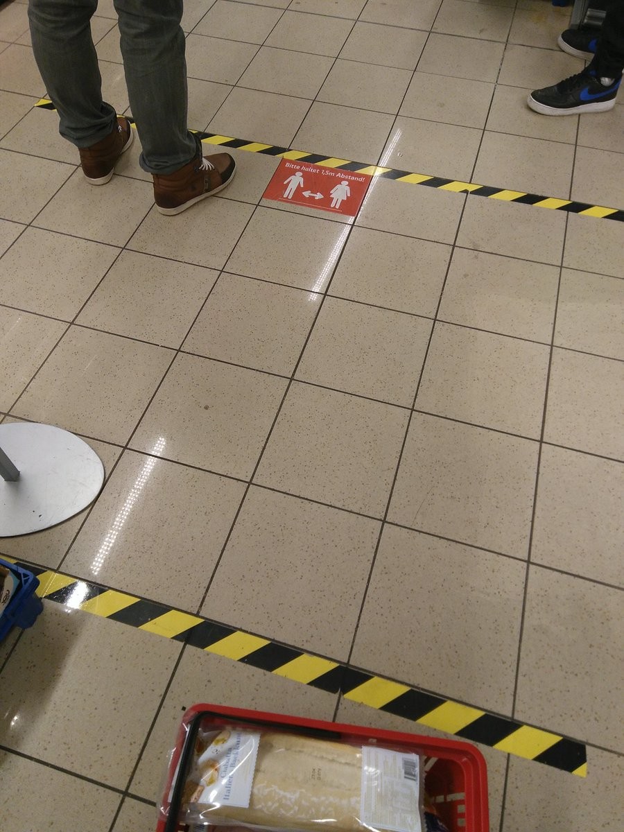 Endlich ausreichend Platz vor der Kasse und genug Zeit zum einpacken. #DankeCorona