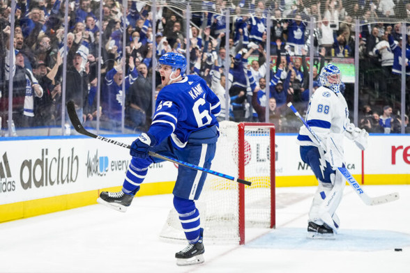 The Toronto Maple Leafs secured home-ice advantage for Round 1 of the playoffs against the Tampa Bay Lightning when they earned a point in their 2-1 overtime loss to the Boston Bruins. The Lightning helped the cause by losing 6-1 to t...