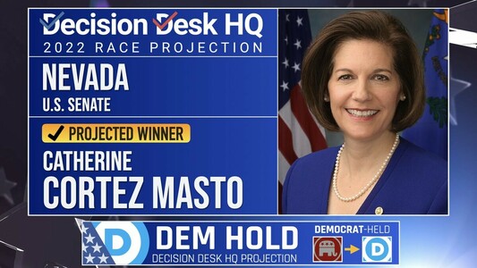 Decision Desk HQ projects Sen. Catherine Cortez Masto (D) wins re-election to the U.S. Senate in Nevada. #DecisionMade: 9:15 pm EST