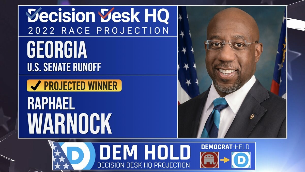Decision Desk HQ projects Sen. Raphael Warnock (D) wins re-election to the U.S. Senate in Georgia.