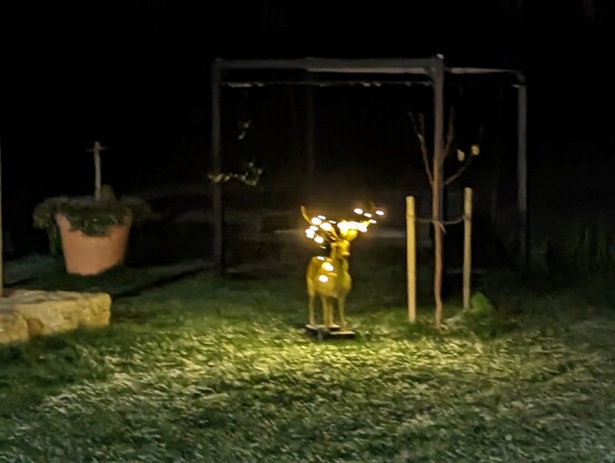 Da steht ein Hirsch aus dem 3D-Drucker im Garten