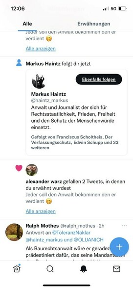 Der antisemitisch geprägte #QAnon und Reichsbürgernahe rechtsradikale #Demokratiefeind, #CoronaLeugner und #Verschwörungsfanatiker mit ausgeprägten Umsturzphantasien @haintz_markus folgt mir und damit unserer Bubble. Logische Konsequenz. #haintzmussweg