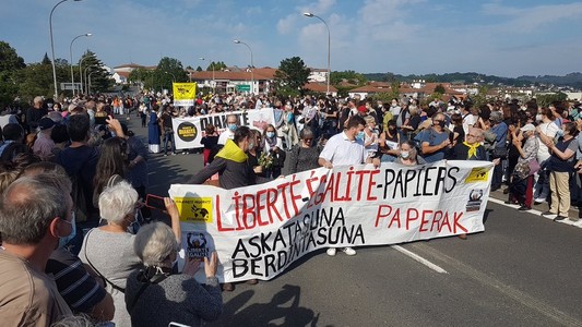 Giro paregabean salatu ditugu migrazio politikak eta baita mugetako kontrol arrazistak ere. Argi utzi dugu Irun eta Hendaiako kaleetan, Euskal Herria harrera herria dela eta ezinbestekoa dela harrera duinak bermatzea! @IrungoHS@twitter.com #EuskalHerriaHarreraHerria