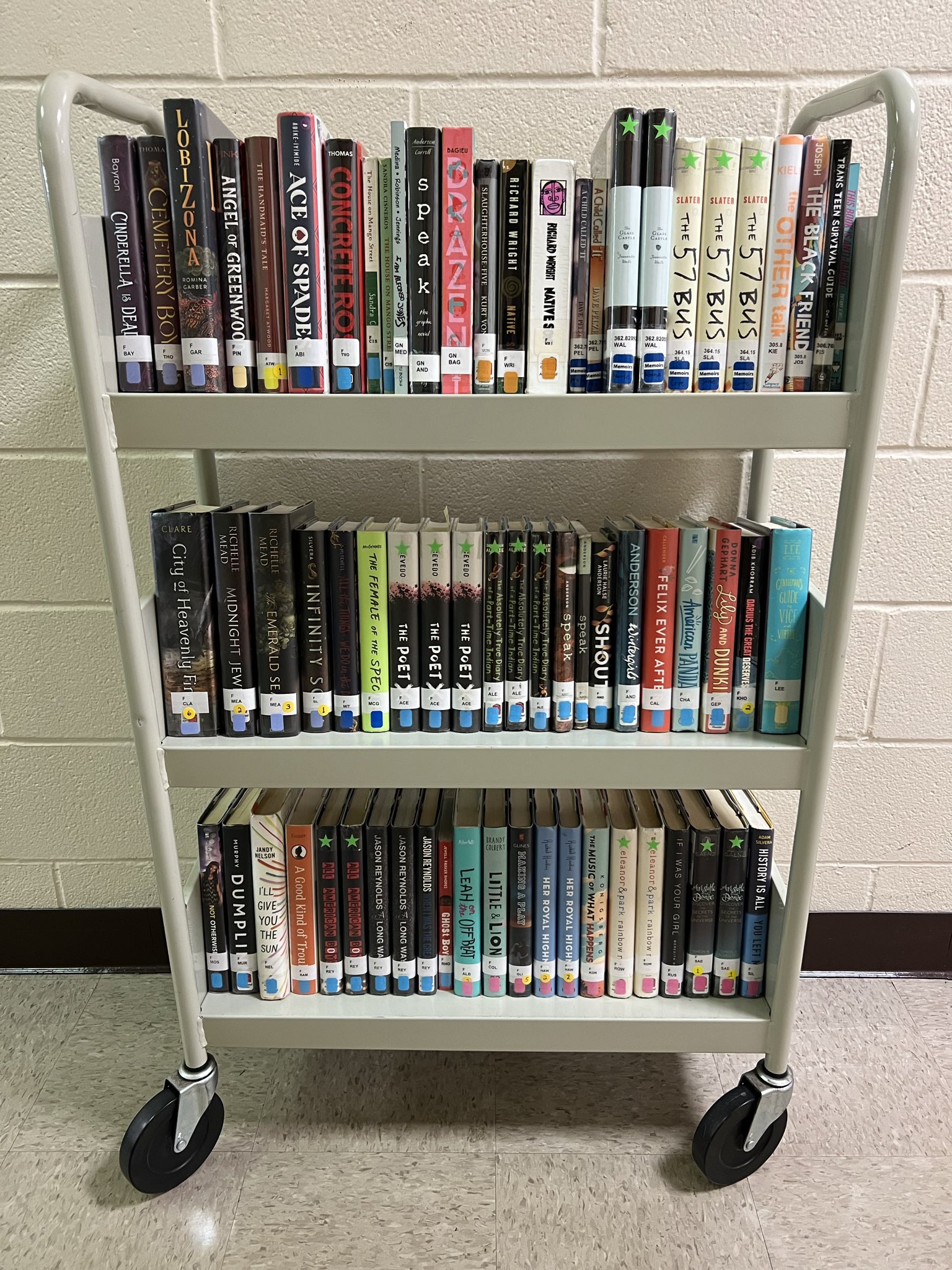 (I did my best to describe all the books I could spot on the photo originally published by the Florida Freedom to Read Project, but if you spot any errors, please do let me know!)