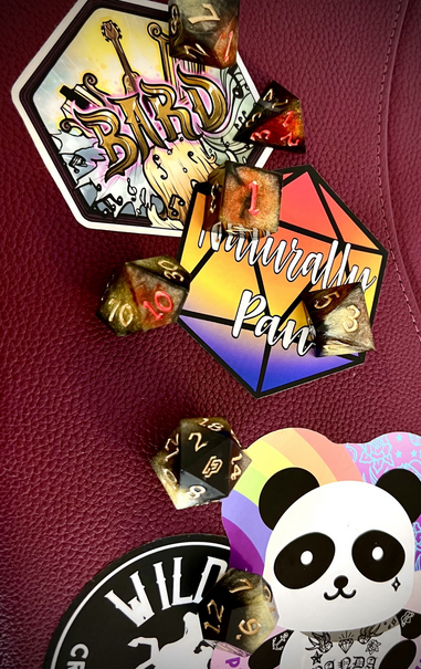 #TTRPGtuesday Hello folks! Friendly Midwestern Cryptid here that makes dice of all shapes and shiny colors. Currently processing an order and getting ready for my new Cricut to come in. 😅 #ttrpg #dice #dicemaker #dicegoblin