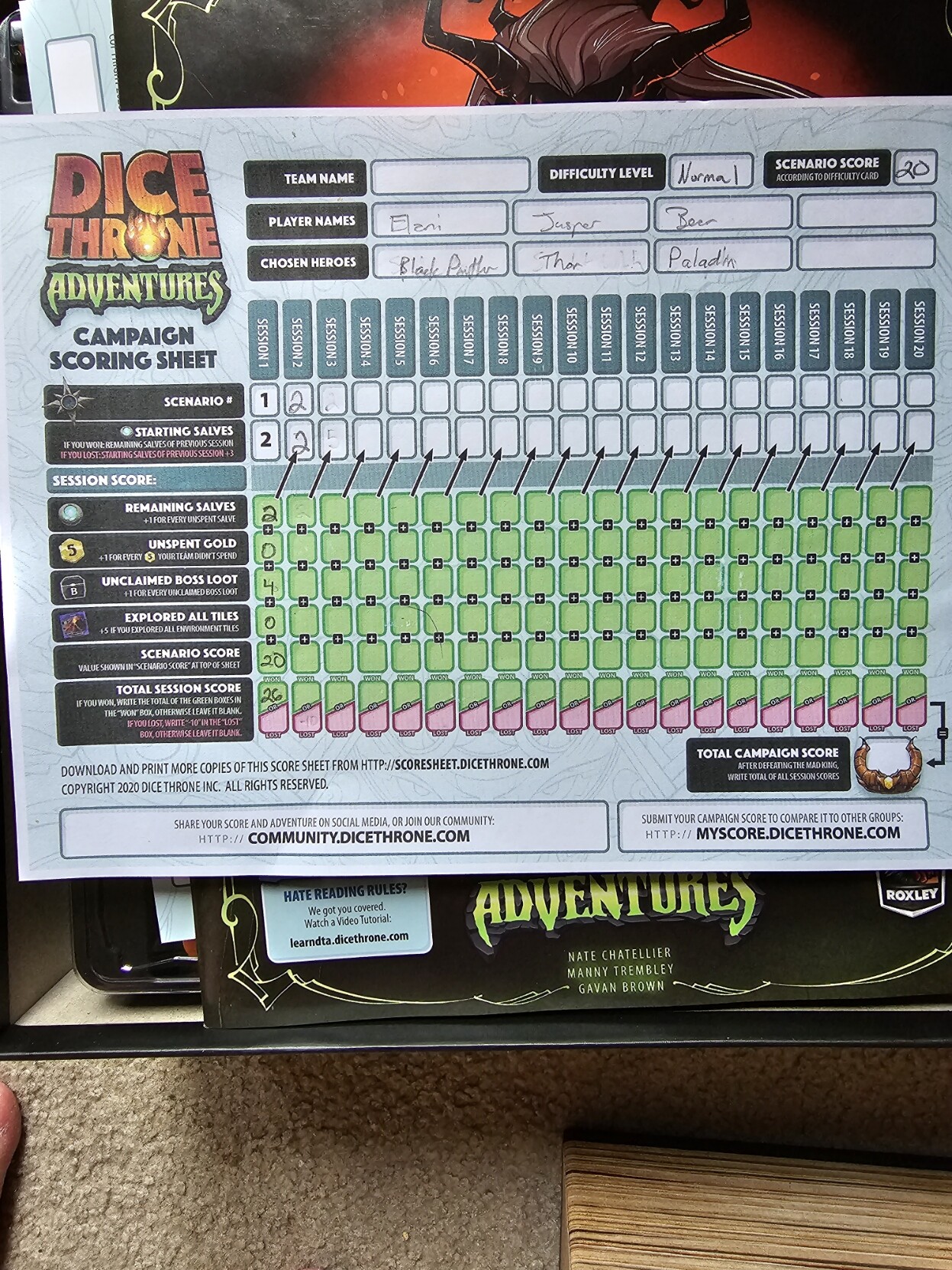 The family completed the first session of the Dice Throne Adventures campaign. Not a bad scorre (26). Next stop, the Fallen Gunslinger.
