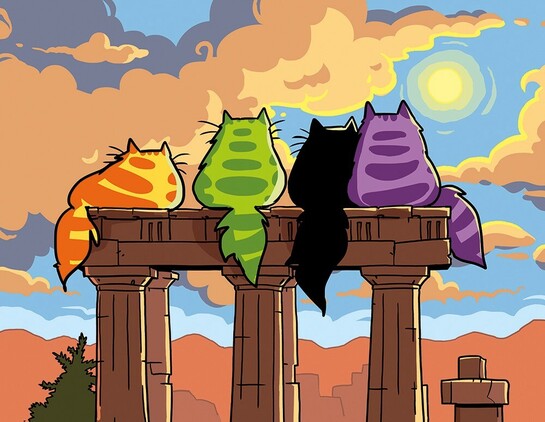 Für den „Dicke Katze“-Kalender 2024 von @OliviaVieweg durfte ich letztens einige Hintergründe illustrieren, zum Beispiel diesen. #art #MastoArt #illustration #DickeKatze #cats