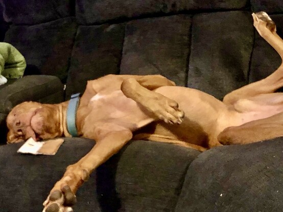 Over time he we went from a timid, flinching pup to a completely confident scrappy high energy dog 99 percent of the time. Ears up, tail wagging constantly, tearing about the house and the yard like a Tasmanian devil. “Pet my belly” actually meant pet my belly.” Jokes about new names went from “Sprinkles” to “Speedy.”