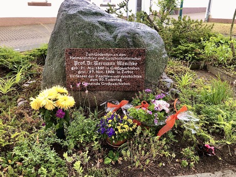 Vor 172 Jahren hier geboren, bekam Hermann #Wäschke hier 1996 einen Gedenkstein von den Bürger:innen, den wir jetzt mit Spenden wieder lesbar gemacht haben. Heute gab es nur Blumen im „Emmer“. Dachte es passt ganz gut zu seiner bodenständigen und dörflichen Art. #Dorfgeschichten #Großpaschleben #geschichte