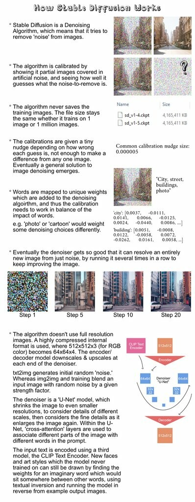 My attempt to explain how Stable Diffusion works after seeing some common misconceptions online (version 1b, may have errors)