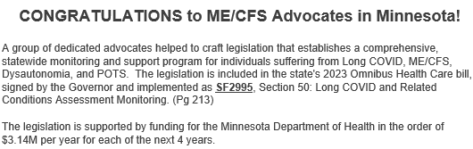 "CONGRATULATIONS to ME/CFS Advocates in Minnesota!" piece
