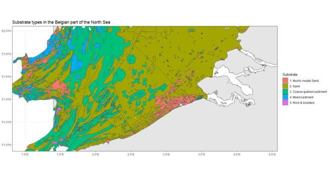 So next time you need some European marine data, don't waste a week like I did. Anyways, this is a substrate map of the Belgian part of the North sea.