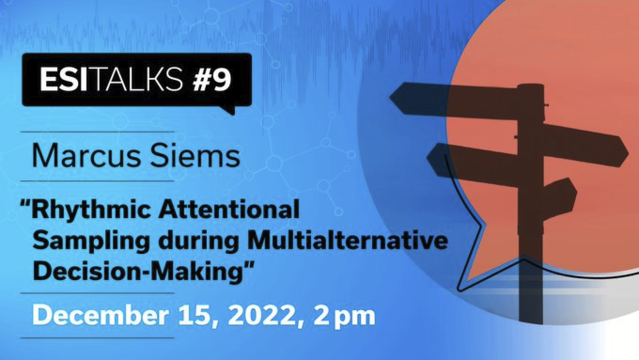 Join us tomorrow, Thursday, December 15, at 14 CET, for the next #ESItalks at our institute in Frankfurt (in person). We are excited to welcome Marcus Siems talking about ""Rhythmic Attentional Sampling during Multialternative Decision-Making"!