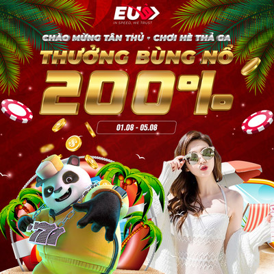 EU9 - EUBET | Tháng 8 Bùng Nổ - Tân Thủ Thưởng 200%. Thời gian áp dụng từ: 1/8 đến 5/8/2022.