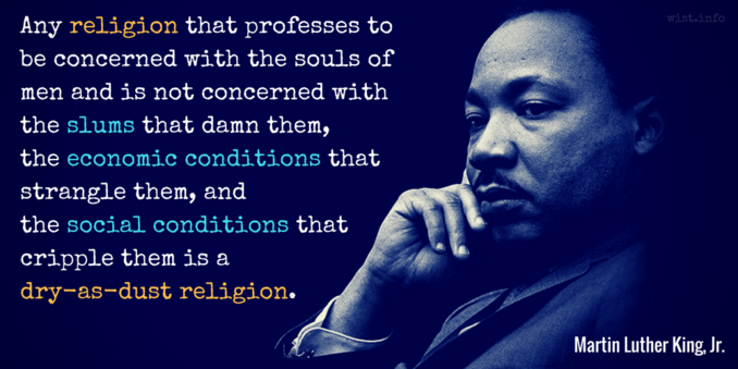 Any religion that professes to be concerned with the souls of men and is not concerned with the slums that damn them, the economic conditions that strangle them, and the social conditions that cripple them is a dry-as-dust religion. Such a religion is the kind the Marxists like to see — an opiate of the people.