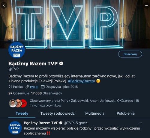 Tu przykład konta teoretycznie promującego działania tzw. #publicznaTV