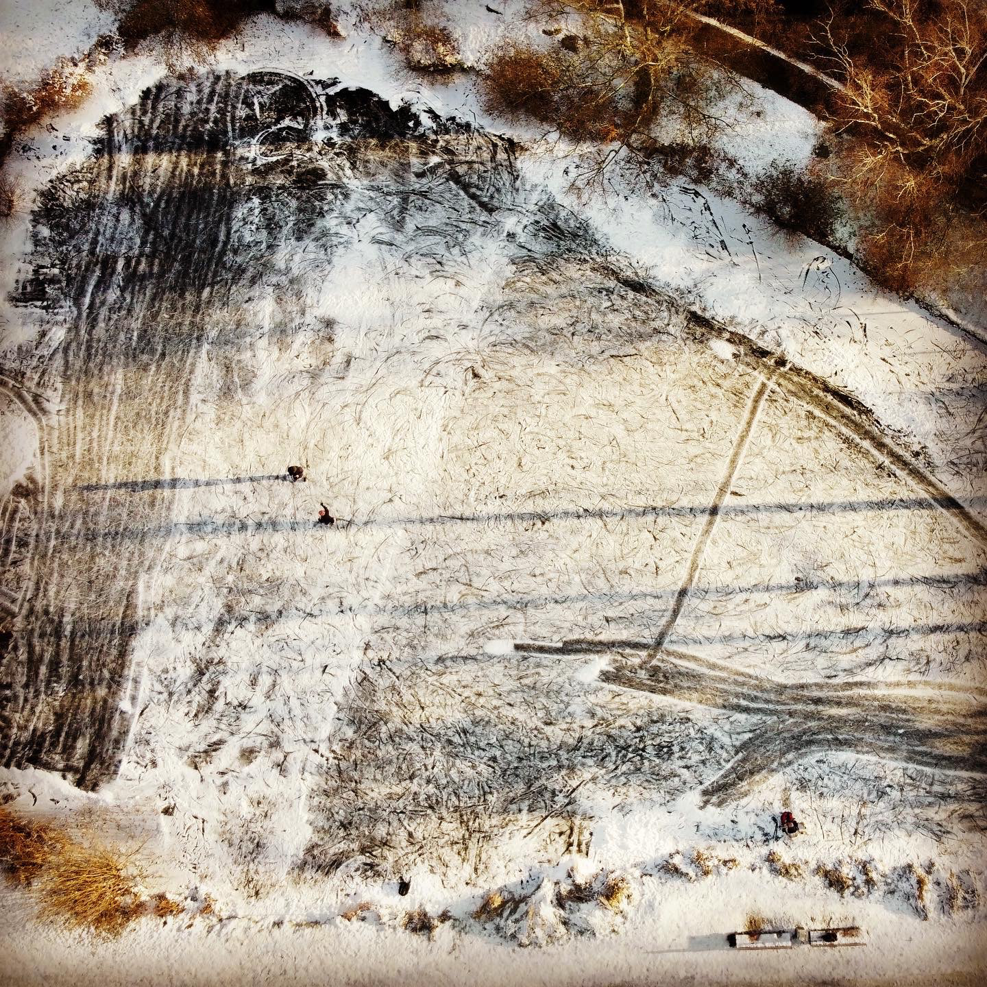 Ein vorerst letztes Mal #Eislaufen. #schlittschuhe #winter #eis #zugefroren #drohne #stapelfeld #vonoben