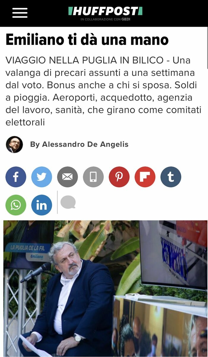 Condannate quanto fatto da #Emiliano o la retorica di essere "forza di cambiamento" o alternative alle destre non fa più neanche sorridere.