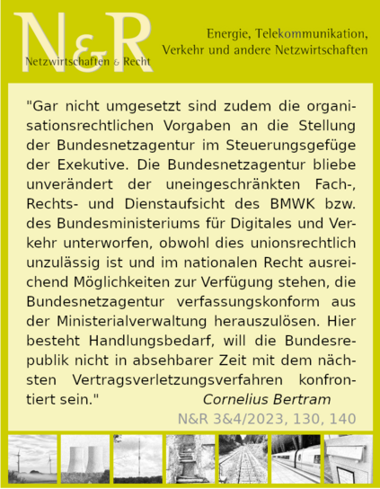 Heute ist N&R 1/2023 erschienen. Mit einem Editorial von MdB Grosse-Brömer zum #Atomausstieg, dem EU-Jahresbericht sowie Beiträgen zu den Breitbandleitlinien und vielem mehr. #Energierecht, #Telekommunikationsrecht #Eisenbahnrecht.