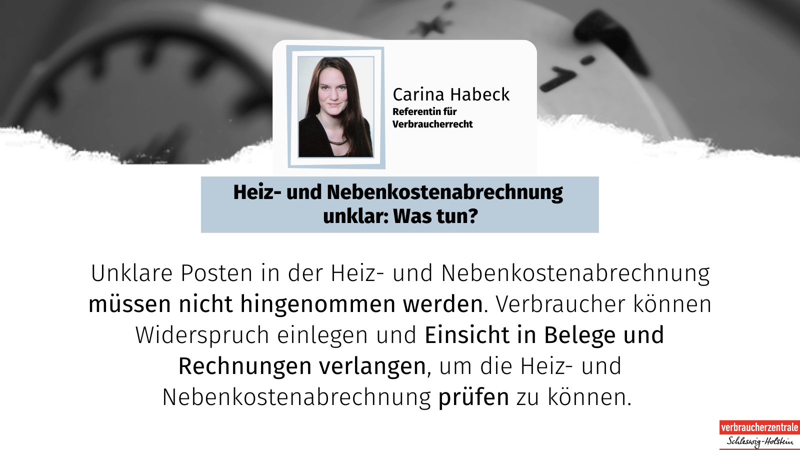 #Wissen to go: Bei unklaren oder falschen Heiz- und Nebenkostenabrechnungen kann Widerspruch eingelegt werden. "Wichtig ist, dass der Widerspruch begründet wird. Die unklaren bzw. falschen Posten und Werte müssen benannt werden", erklärt Expertin für #Energierecht Carina Habeck.
