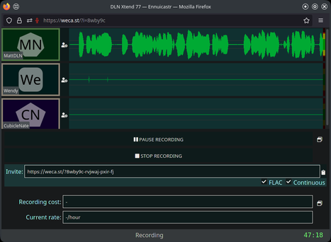 Recorded #DLNxtend today using #Ennuicaster so far I'm liking it a lot. Now time to pull them into @tenacity for the editing of episode 75.