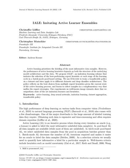 'IALE: Imitating Active Learner Ensembles', by Christoffer Löffler, Christopher Mutschler.